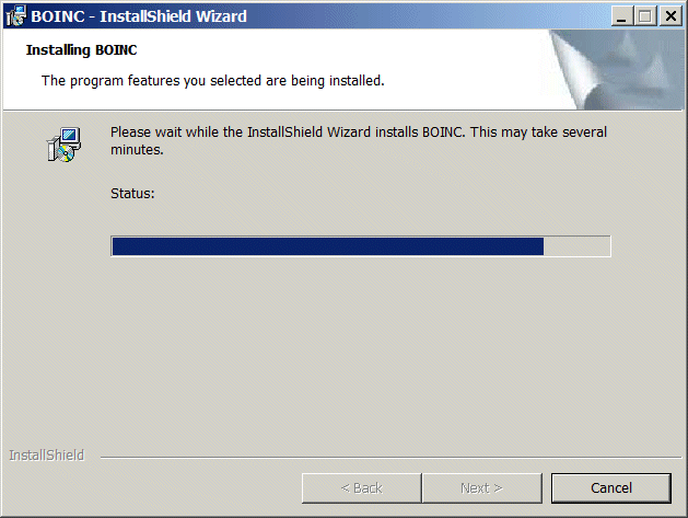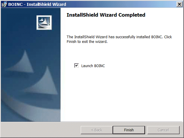 10. Jätä kruksi Launch BOINC -ruutuun InstallShield Wizard
