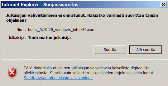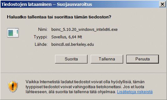/ Suorita,jolloin BOINC latautuu ja asentuu automaattisesti.